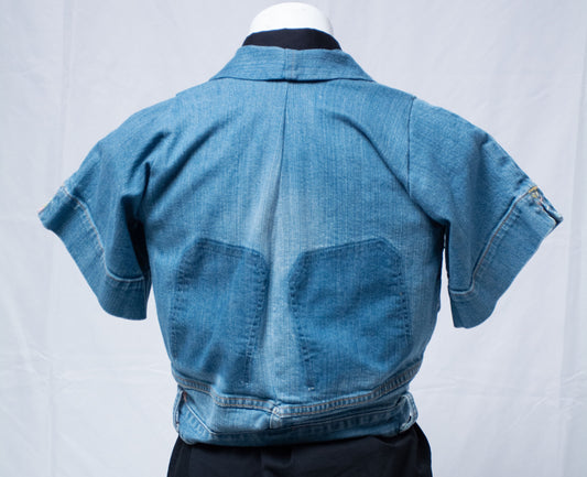 Black Jeans Repurposed to Jacket with Ruffle Collar